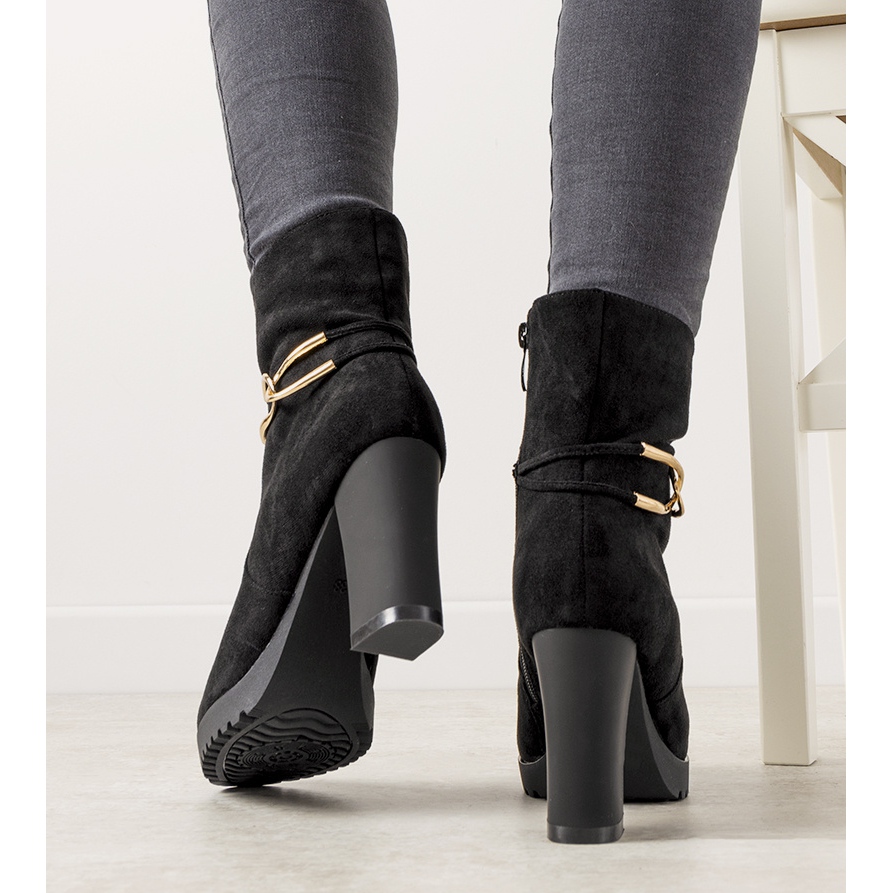 Confectionate din piele ecologica piele intoarsa de inalta calitate, botinele Chateaub ofera nu doar un aspect estetic, ci si confort la purtare. Partea superioară este decorată cu o curea subtilă cu aplicație aurie, care le conferă un caracter unic. Datorita fermoarului, incaltarea si scoaterea pantofilor devine rapida si comoda.