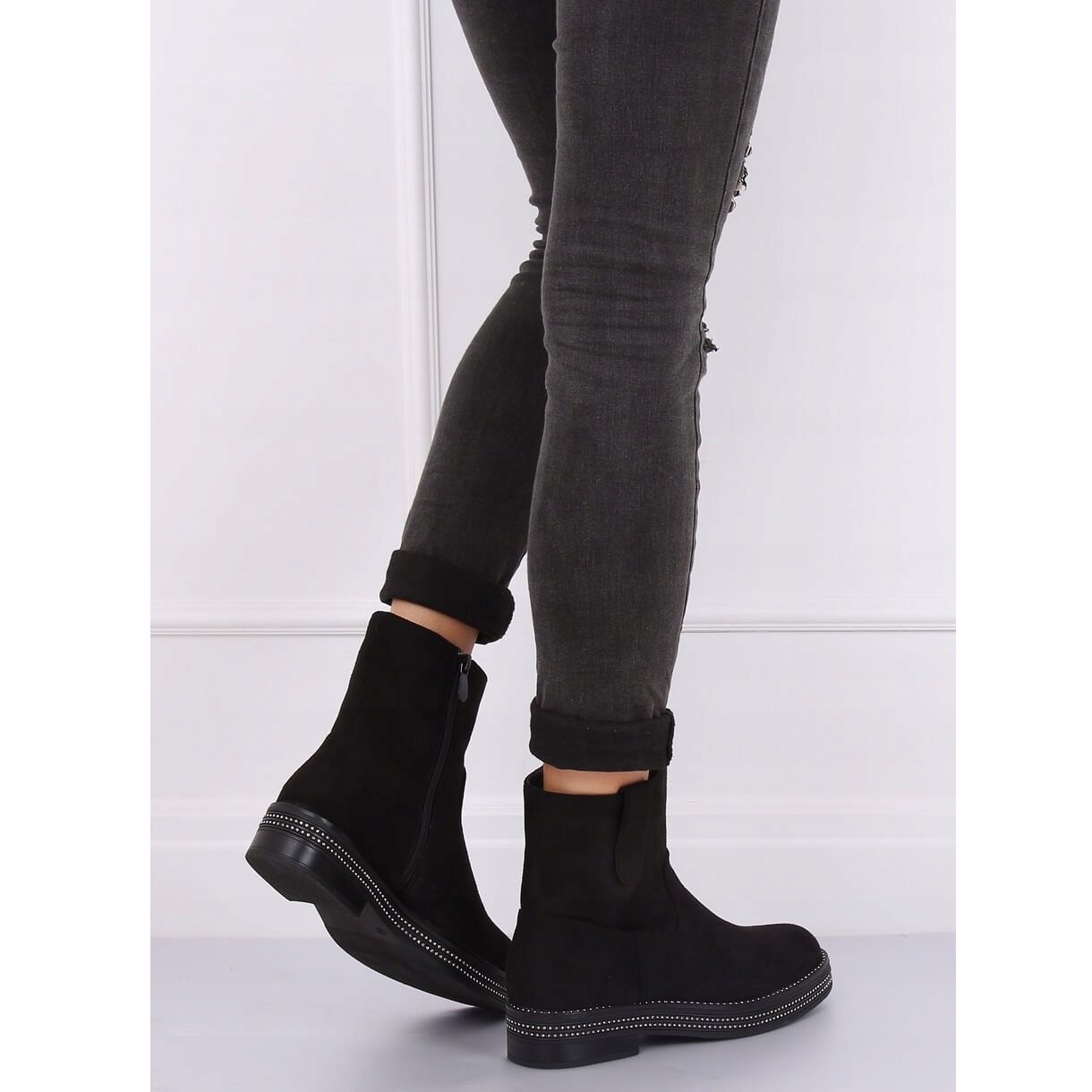 Va prezentam cizme plate de dama intr-o culoare clasica neagra, model CH1812-2 Black. Aceste botine unice din piele intoarsa combina eleganta cu accente moderne, incantandu-se cu strasurile subtile asezate pe talpa inalta. Înălțimea tocului de 4,0 cm și vârful rotund le fac extrem de confortabile, perfecte pentru utilizarea de zi cu zi.