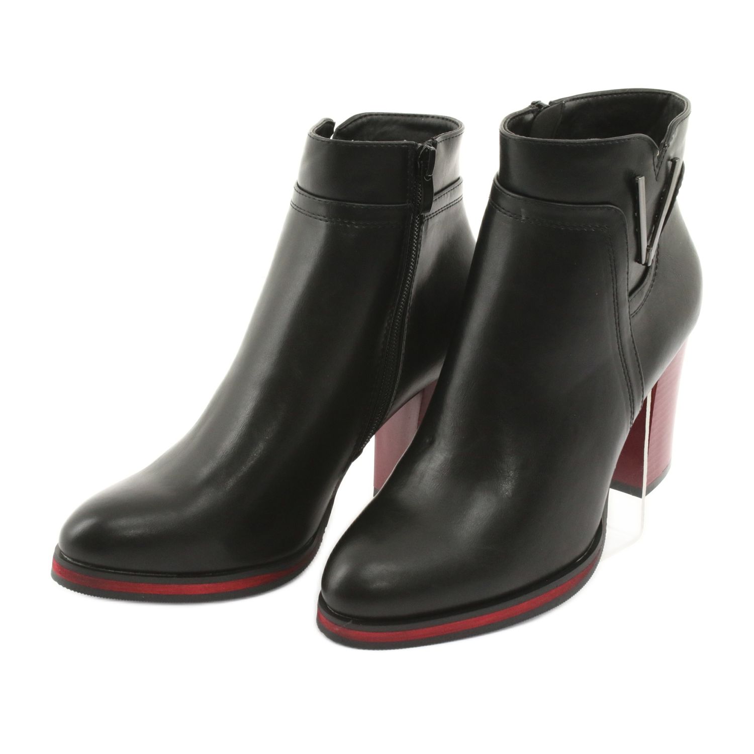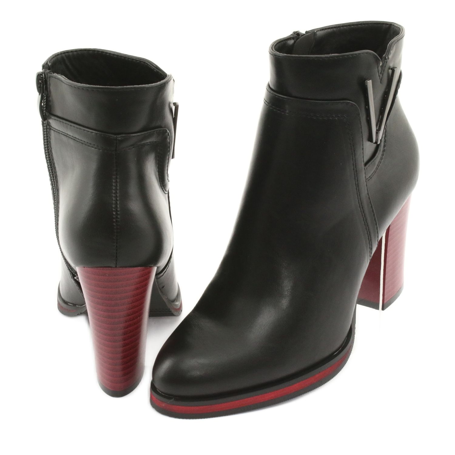 Designul lor unic se distinge printr-un toc roșu și negru cu o înălțime de 8,5 cm și un decor subtil pe lateral care le adaugă caracter. Degetul de migdale confortabil face ca cizmele nu doar stilate, ci si confortabile de purtat. Căptușite cu blană plăcută, garantează o izolare adecvată chiar și în zilele mai reci.