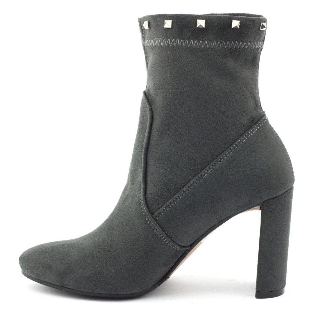 Cizme elegante pentru femei Nicor 090-A Combinați un personaj la modă, rock, cu comoditatea de utilizare. Din exterior, din piele ecologică într -o nuanță de grafit cu accente multiple, în interior, au o inserție naturală de piele, care asigură confortul mersului toată ziua. Partea superioară ajunge la gleznă și este decorată cu strasuri și știfturi, iar nasul rotunjit adaugă un aspect universal.