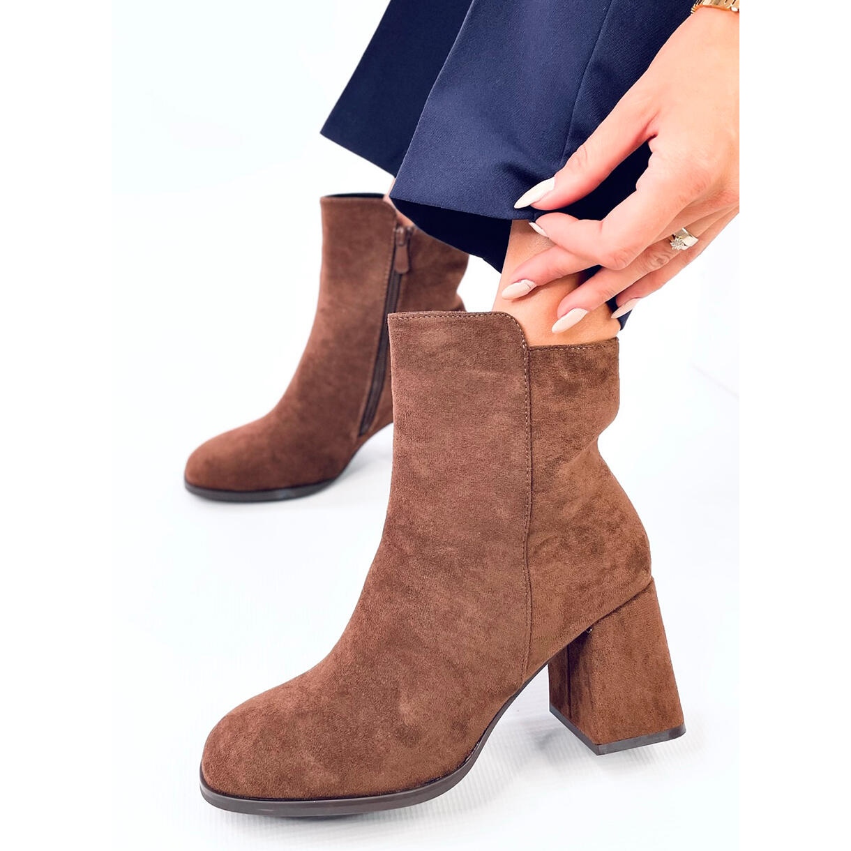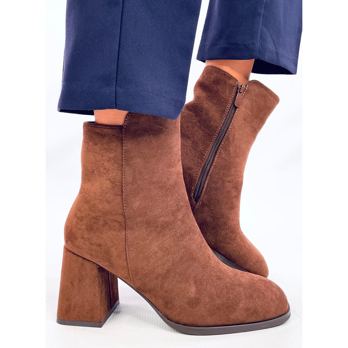 Un element de fixare practic cu fermoar așezat pe partea superioară a superiorului face mai ușor să se pună și să decoleze pantofi, ceea ce le face alegerea perfectă pentru orice ocazie. Fabricate din piele de căprioară ecologică, cizmele oferă nu numai un aspect elegant, ci și materiale ecologice. Interiorul pantofilor este căptușit cu blană delicată, ceea ce asigură încălzirea confortabilă în zilele mai răcoroase.