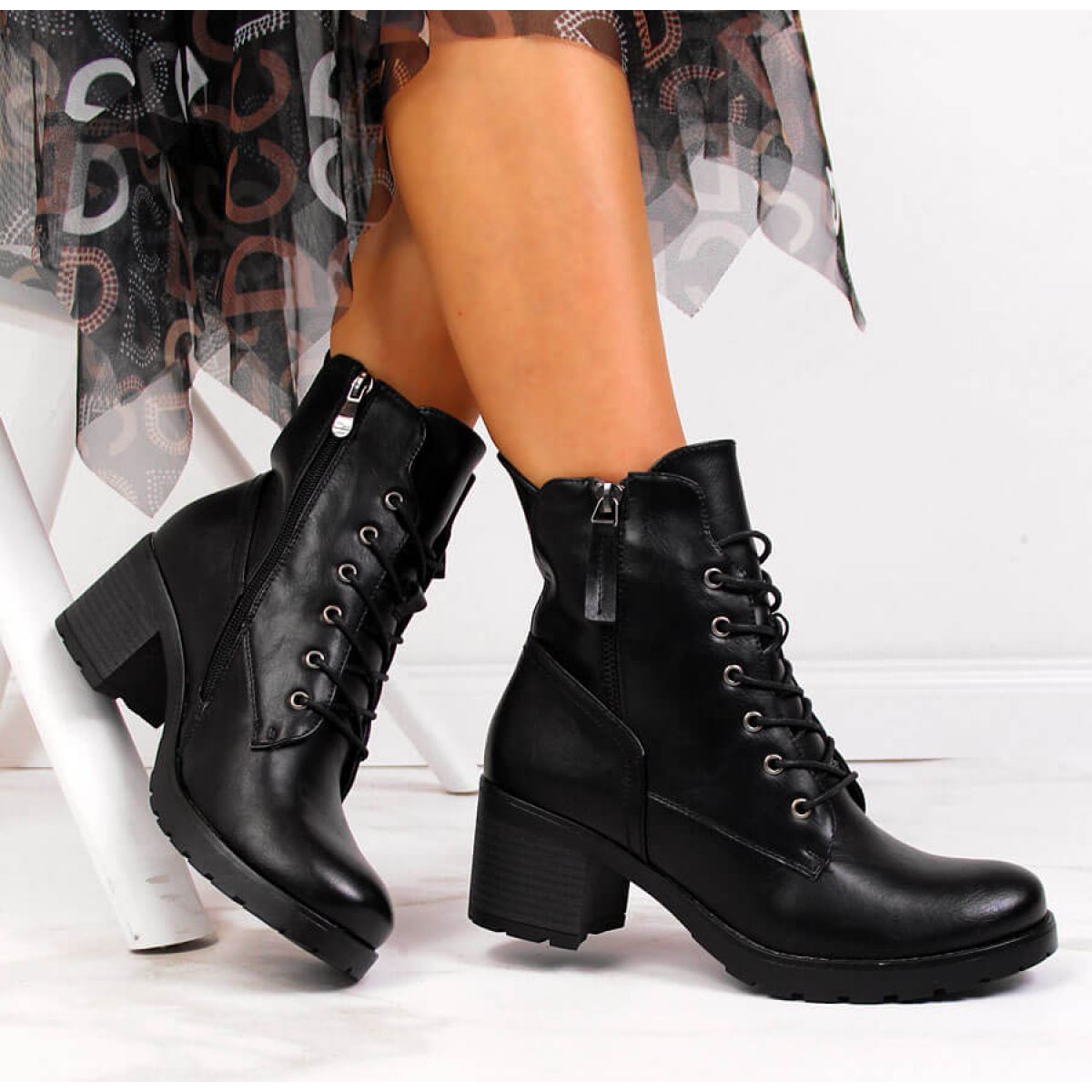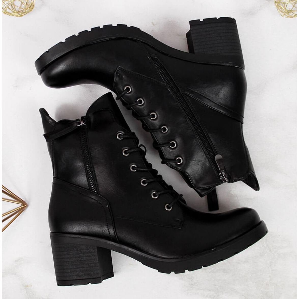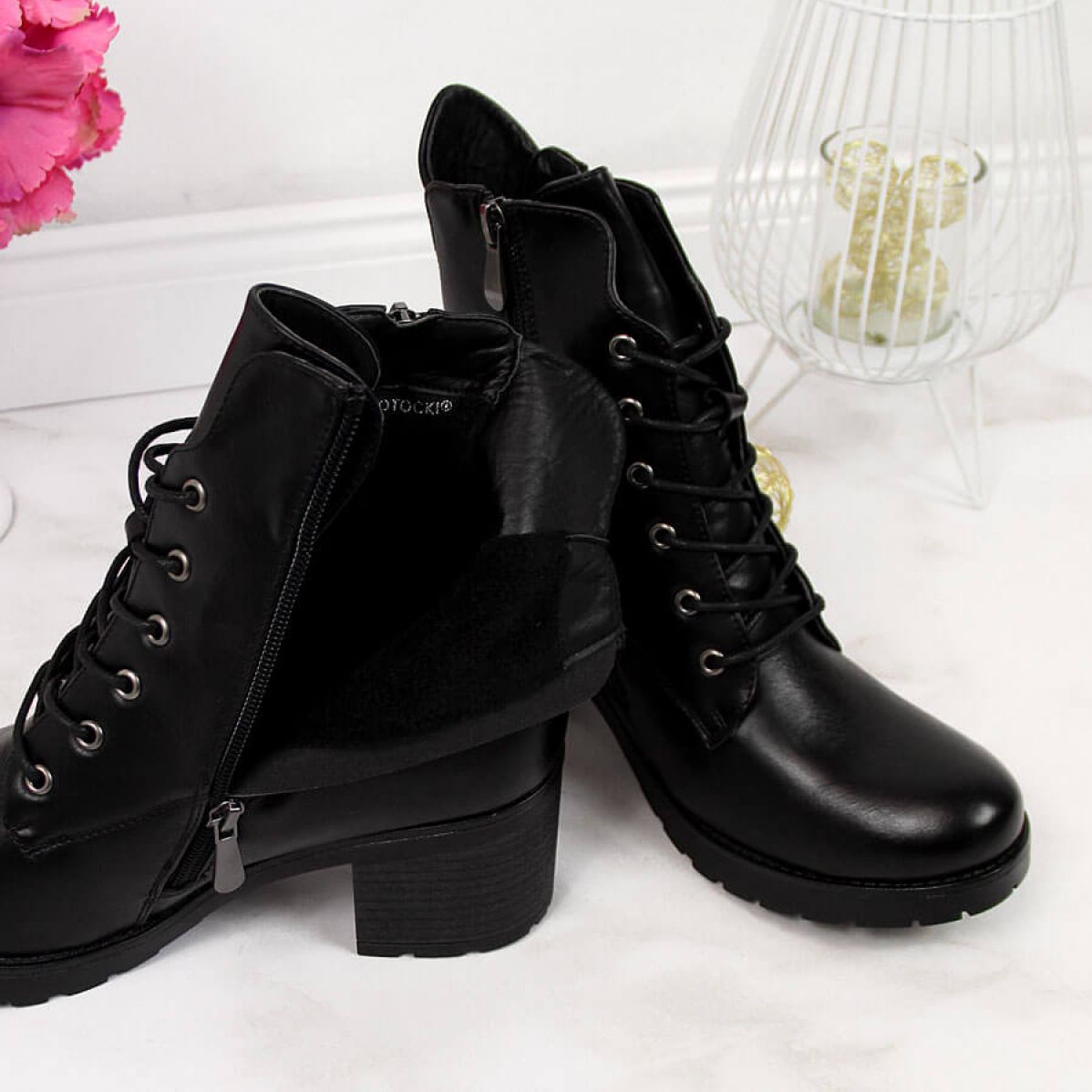Modelul Potocki se caracterizează prin izolație, ceea ce îl face o alegere excelentă pentru zilele mai reci. Varful rotund si inaltimea gleznei adauga siluete subtire si lejeritate, in timp ce tocul in forma de bloc (6,5 cm inaltime) garanteaza stabilitate si confort la purtare. În plus, cizmele sunt echipate cu fermoar și șireturi, ceea ce permite o potrivire perfectă pe picior.