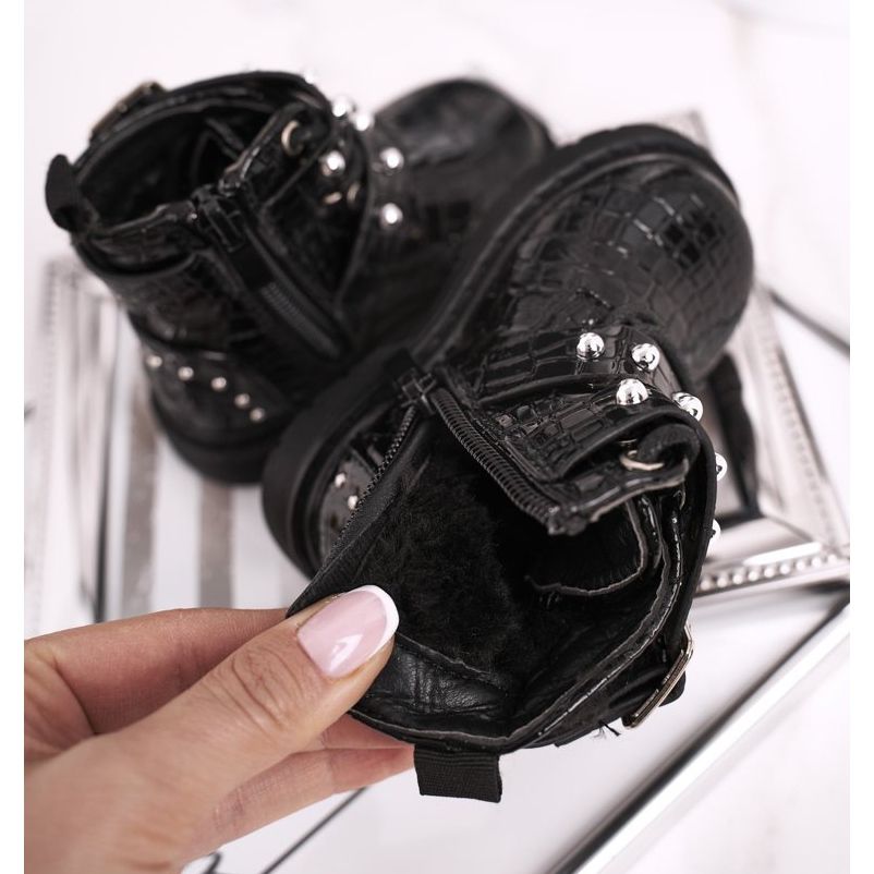 Detalii: FRROCK Cizme pentru copii încălzite cu blană, lac negru Mary