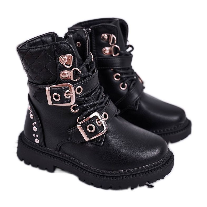 Detalii: FRROCK Cizme pentru copii încălzite cu blana neagră Dolly negru de aur