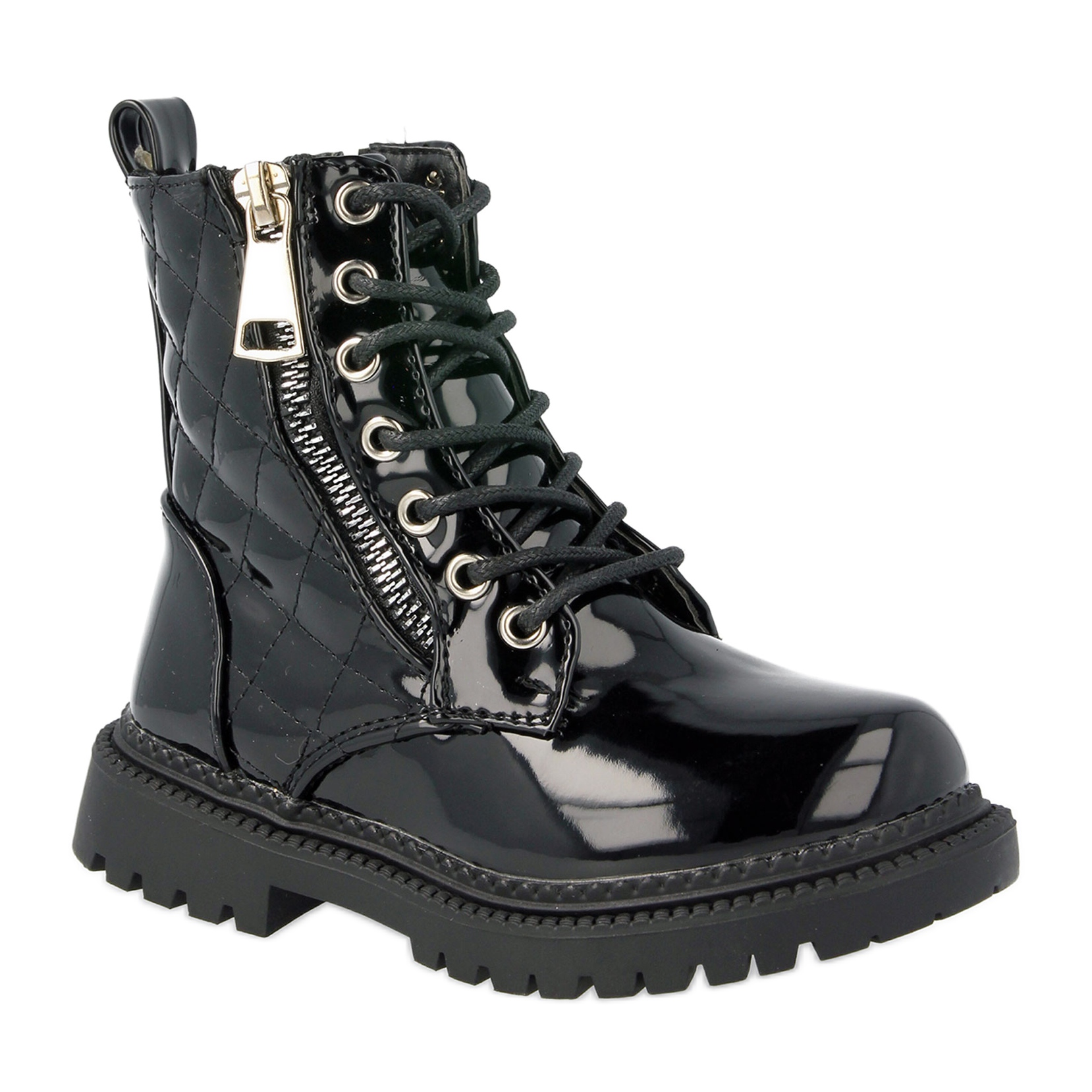 Confectionate din piele ecologica lacuita de inalta calitate, cizmele ofera un aspect excelent si durabilitate. Izolația sub formă de blană moale garantează căldură și confort, ceea ce este deosebit de important în zilele de iarnă. Șiretul clasic permite o potrivire perfectă pe picior, iar un fermoar practic pe partea superioară îl face ușor de pus și scos rapid.