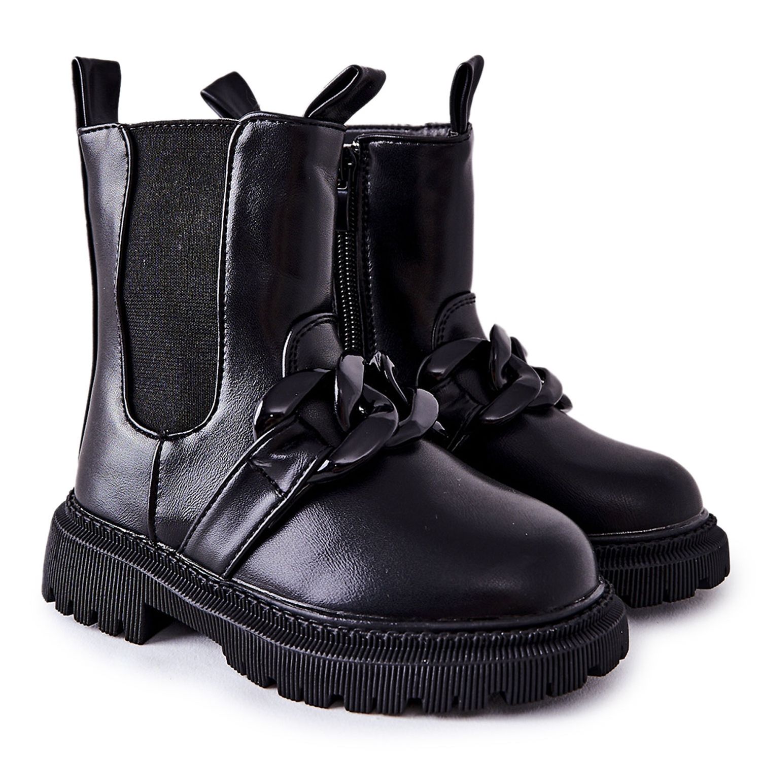 Descoperă cizme unice pentru copii căptușite cu lanț de la marca FR1, care încântă nu doar prin stil, ci și prin funcționalitate. Aceste botine negre elegante din piele ecologică combină designul la modă cu confortul ridicat la purtare. Perfect pentru zilele mai reci, izolat cu o pătură de pantofi va oferi căldură și confort pentru picioarele mici.