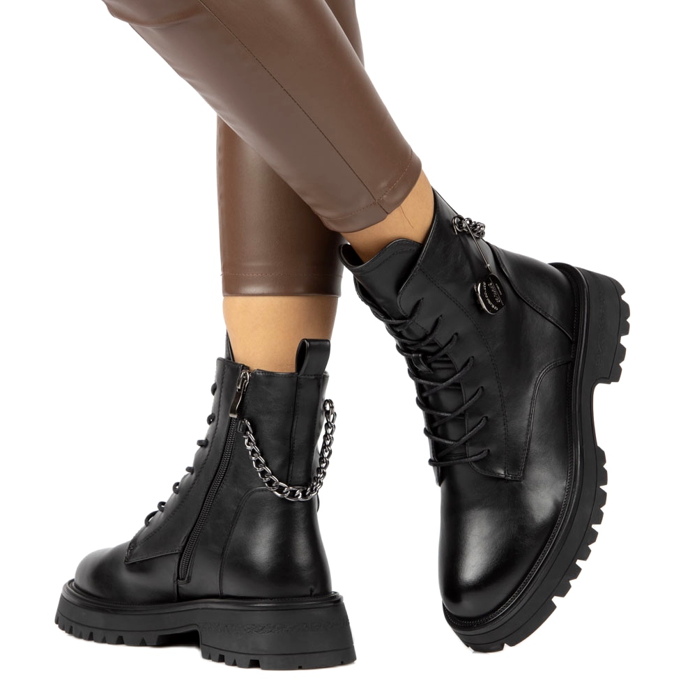 Cizmele negre Filippo DBT4059 combină caracterul rock al glandului cu detalii elegante: un știft de siguranță și un lanț decorativ. Fabricate din piele ecologică, cu blană plăcută în interior, oferă căldură și confort chiar și în zilele mai răcoroase, în timp ce se potrivesc atât de cotidian, cât și de stilizări mai formale.