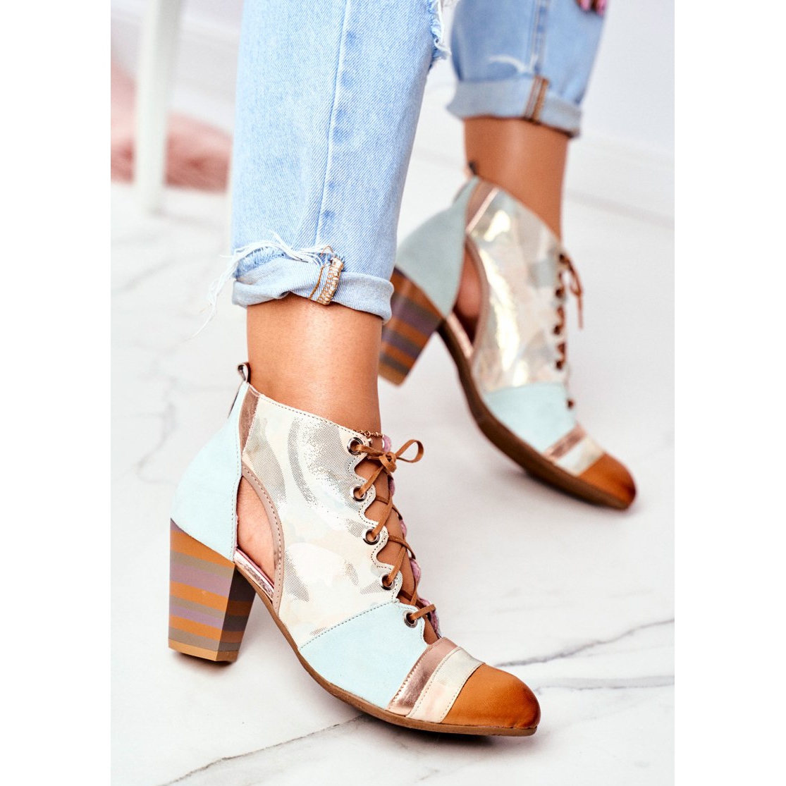 Maciejka Cizme pentru femei din piele cu toc Maciejka Spring 03938-04 bej multicolor verde