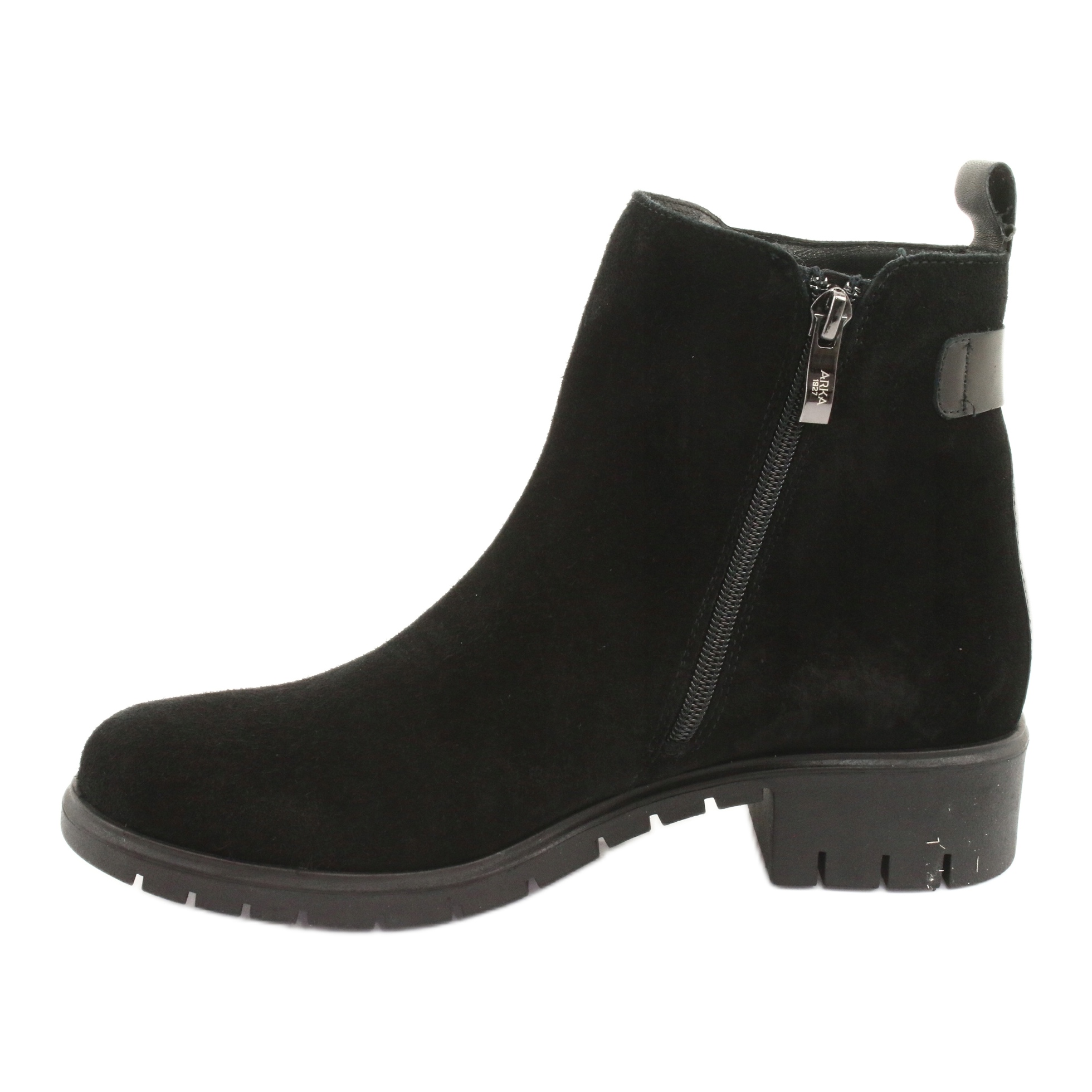 Cizme Ark 7202 elegante și practice realizate în întregime din piele naturală din piele de căprioară. Izolați cu încălțăminte, perfecte pentru zile mai răcoroase - oferă căldură, confort și aspect elegant. Un nas clasic, rotunjit și un bloc stabil cu un bloc înalt de 4 cm garantează confortul de a purta toată ziua. Fixerul cu fermoar face mai ușor de pus, iar culorile negre universale se îmbină bine cu multe stilizări.