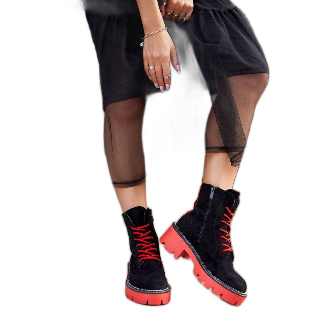 PS1 Cizme pentru femei Negru roșu piele de căprioară Malawi roşu