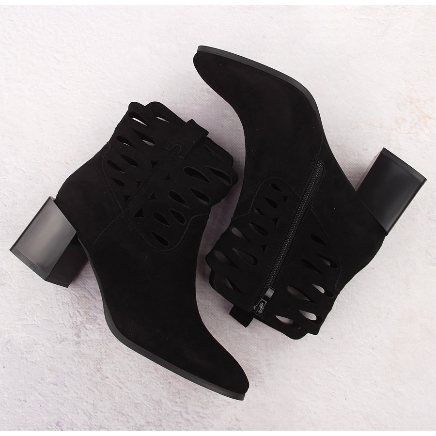 M. DASZYŃSKI M. DASZYŃSKI Cizme pentru femei pe postul de piele de căprioară Black Openwork negru