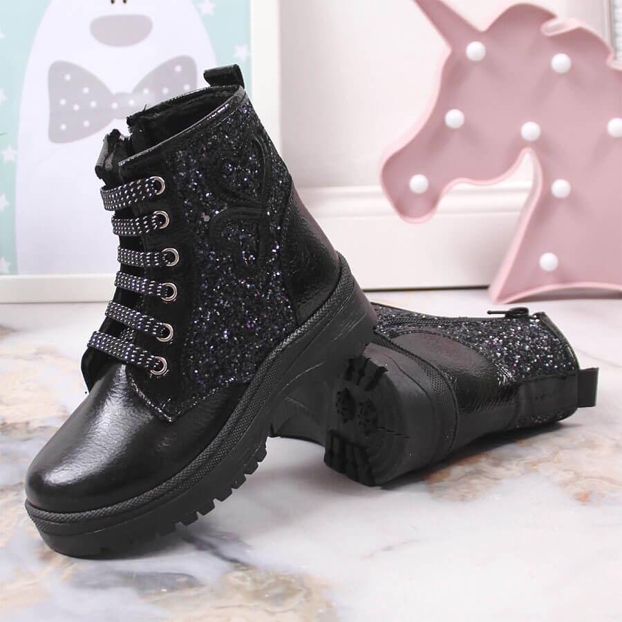 Va prezentam cizme de fete negre, sclipitoare, izolate de la renumitul brand Potocki. Acești pantofi eleganti sunt alegerea perfectă pentru zilele mai reci, combinând designul la modă cu confortul ridicat de utilizare.