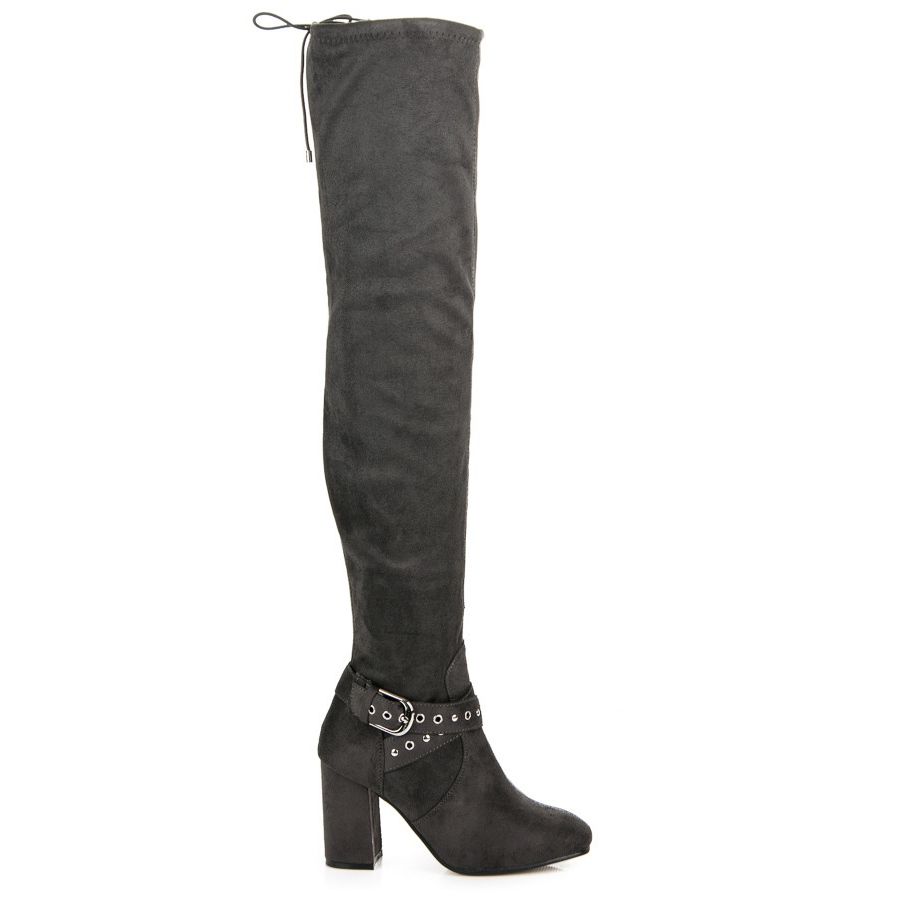 Erynn Erynn Cizme peste genunchi cu cataramă decorativă gri