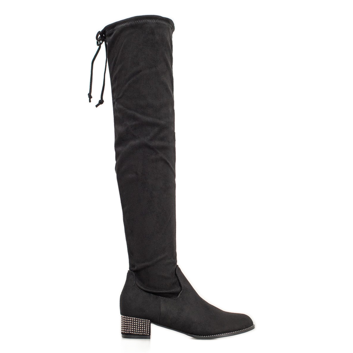 Seastar Seastar Cizme peste genunchi cu cristale negru