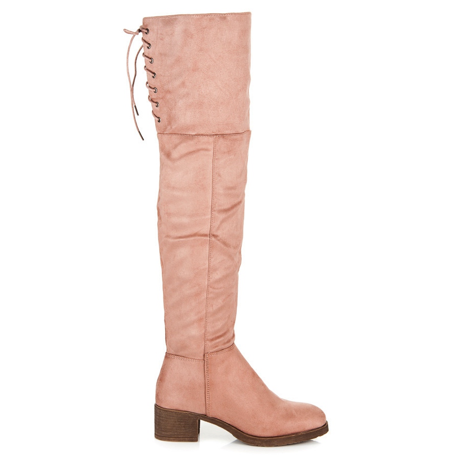 Ideal Shoes Ideal Shoes Cizme peste genunchi cu legare roz