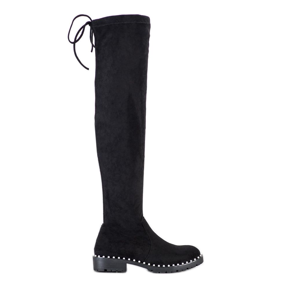 Detalii: SHELOVET Cizme peste genunchi cu perle negru