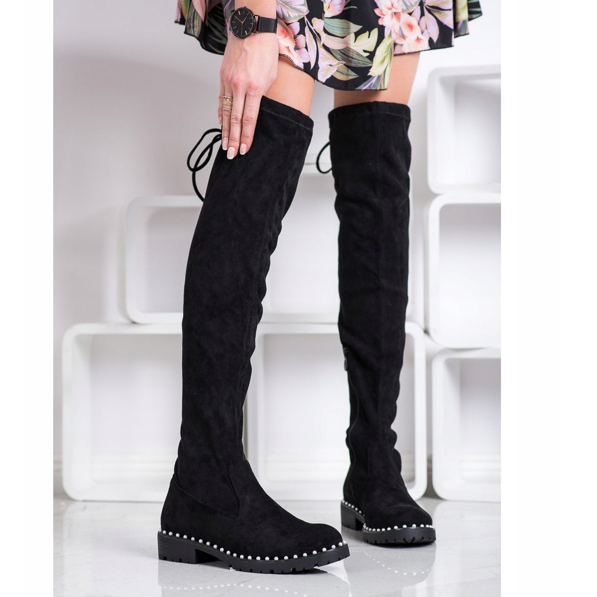 SHELOVET SHELOVET Cizme peste genunchi cu perle negru