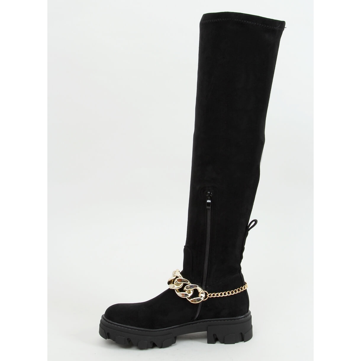 Detalii: Cizme peste genunchi cu talpă groasă ML174 Microfibre Black negru