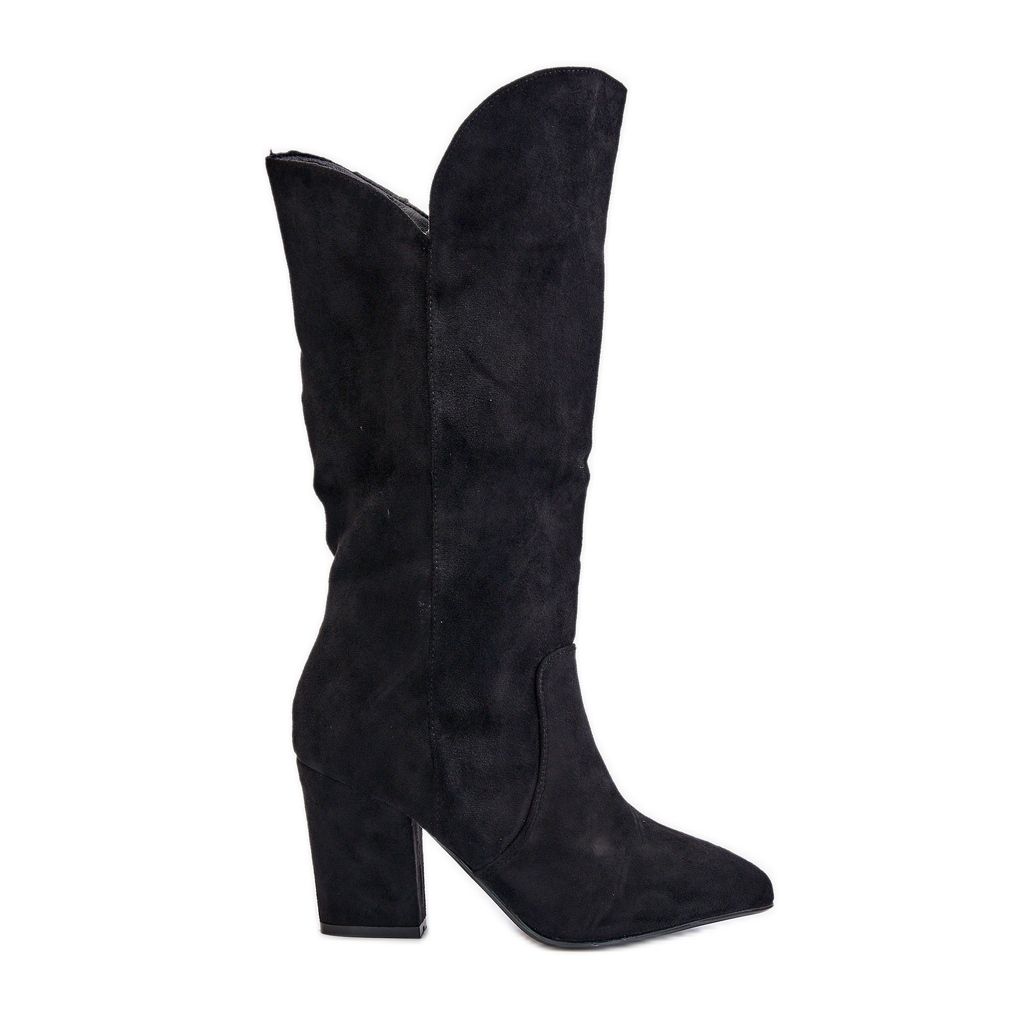 Detalii: Cizme peste genunchi cu toc inalt din piele intoarsa ecologica, Black Clorira negru