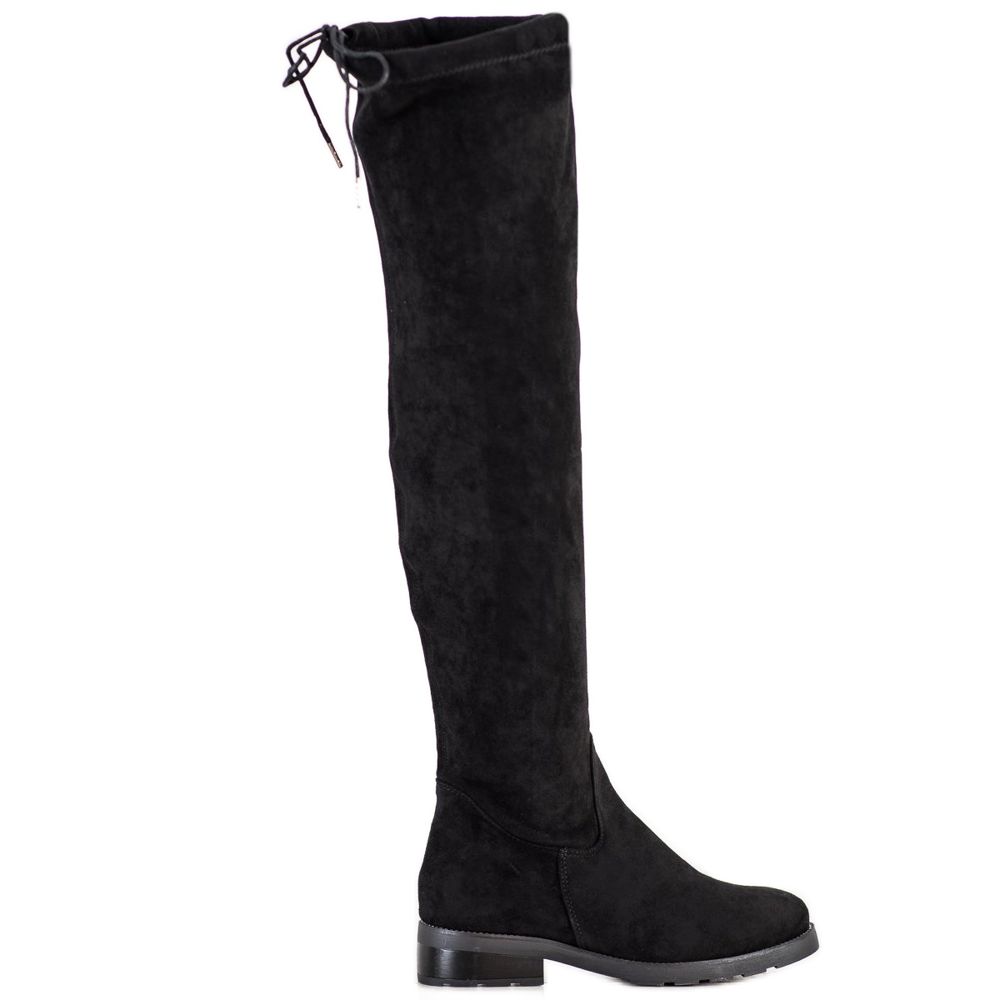 SHELOVET SHELOVET Cizme peste genunchi cu zirconiu cubic negru