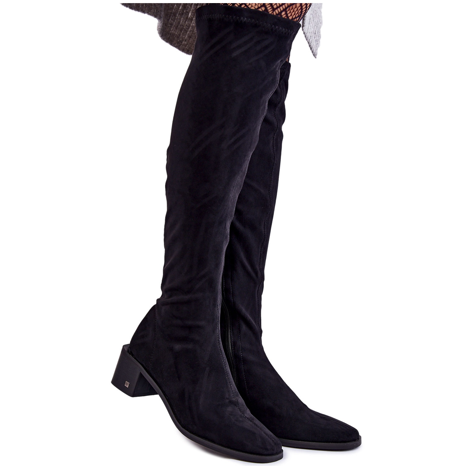 Cizmele peste genunchi din piele intoarsa Vinceza de la Hessa sunt o alegere perfecta pentru femeile care doresc sa combine stilul si confortul. Aceste cizme negre clasice, așezate pe un toc bloc jos (5,5 cm), asigură confortul purtării pe tot parcursul zilei.