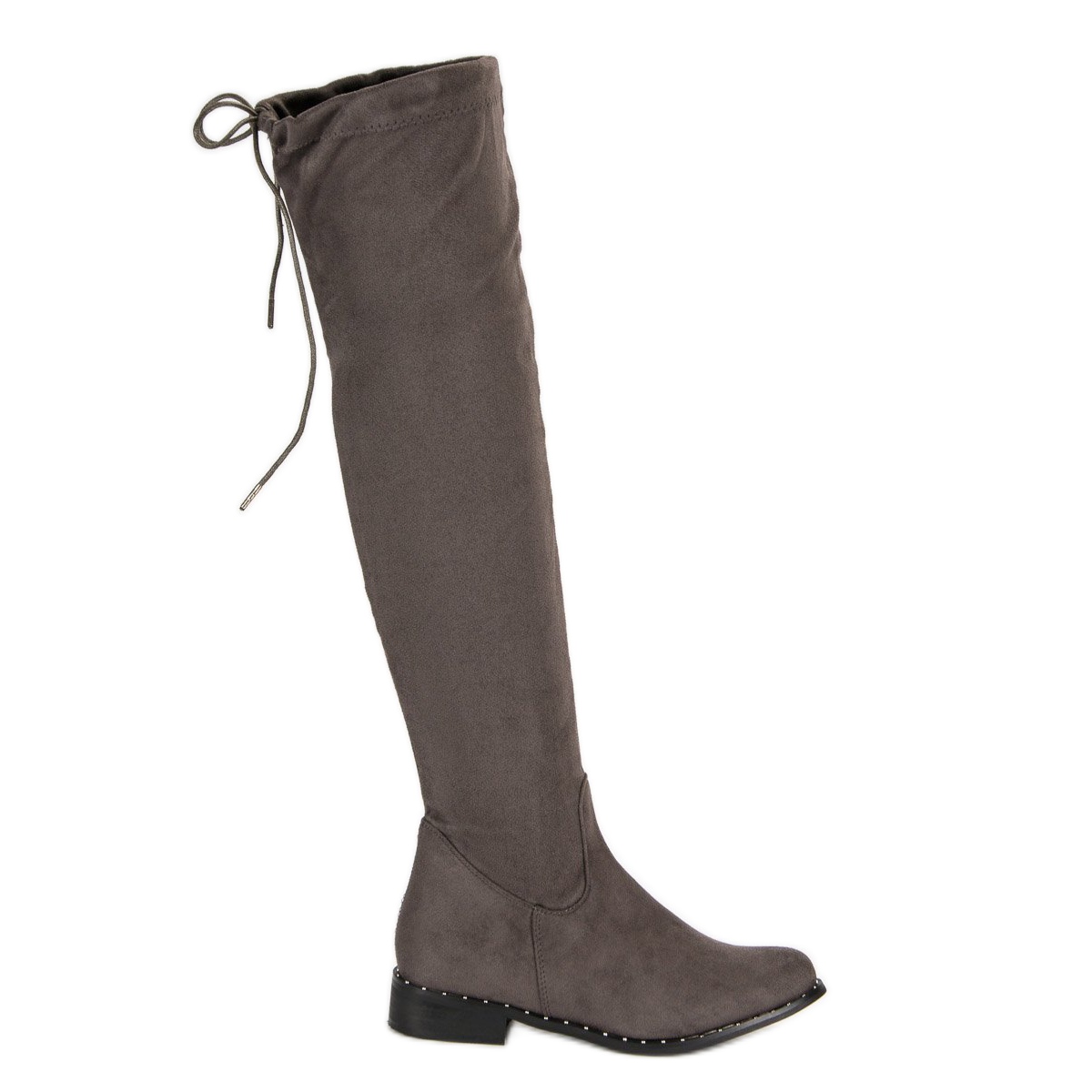 Detalii: Seastar Cizme peste genunchi pe toc plat gri
