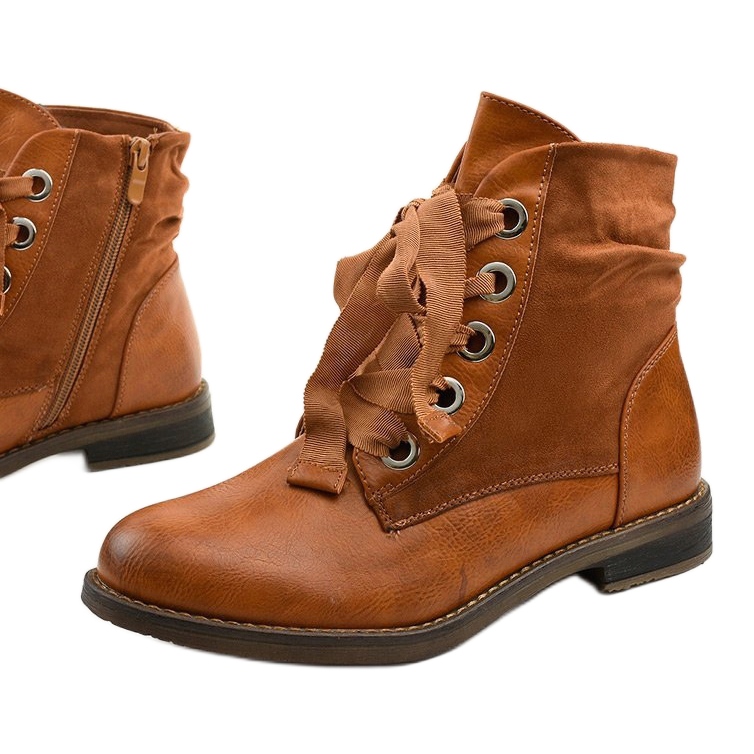 Detalii: Cizme plate camel cu fermoar, imitație de piele Stechford maro galben