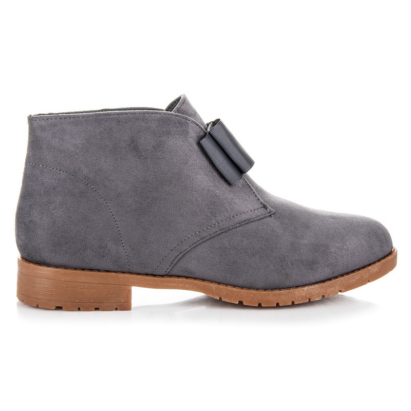 Botinele plate gri cu fundă de la Ideal Shoes sunt o alegere perfectă pentru femeile care apreciază eleganța și confortul într-una. Confecționate din piele de căprioară artificială de înaltă calitate, aceste botine nu sunt doar elegante, ci și ecologice. Tocul lor plat de 3 cm înălțime asigură confort în timpul purtării de zi cu zi, perfect atât pentru lucru, cât și pentru întâlnirile cu prietenii.