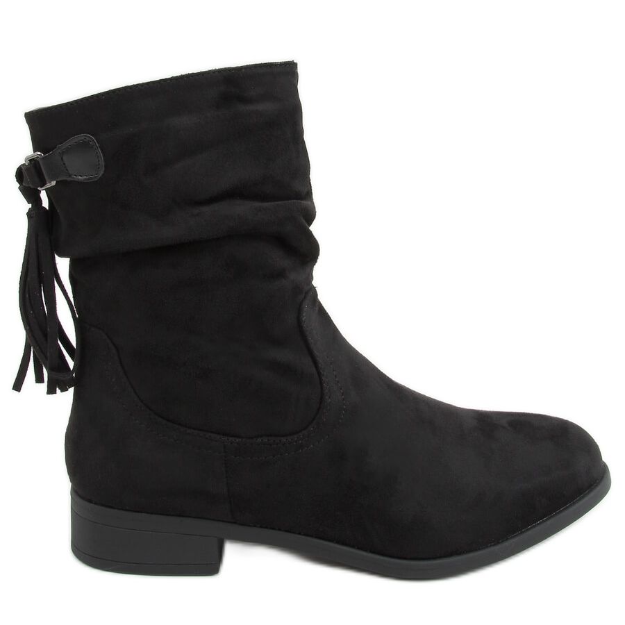 Detalii: Cizme plate cu un negru franjurat B0-330 Negru