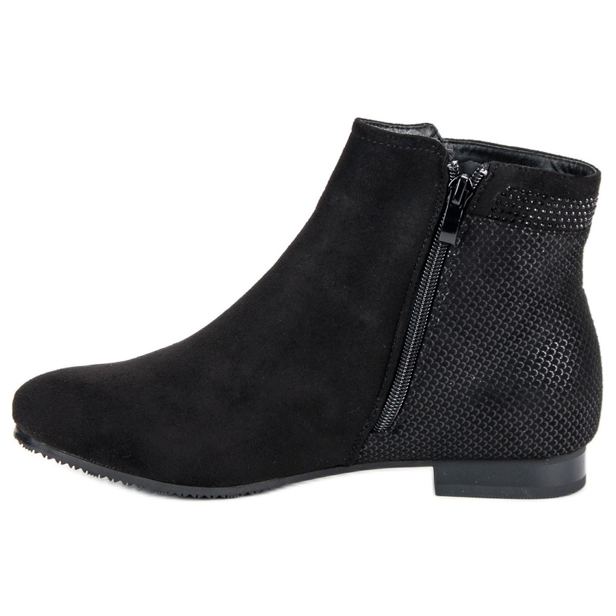Cizmele plate negre clasice sunt un must-have absolut în garderoba oricărei femei. Confecționate din piele ecologică de înaltă calitate, aceste botine îmbină eleganța și confortul. Izolați cu o pătură de pantofi, sunt perfecti pentru zilele mai reci, asigurând căldură și confort în timpul activităților de zi cu zi.