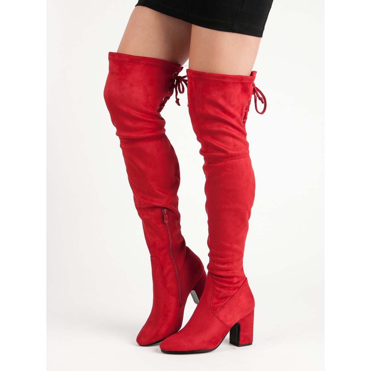 Detalii: Super Me Cizme roșii la coapsă pe un post roșu