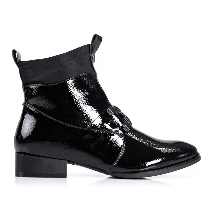 Cizmele elegante de dama de la Shelovet sunt o alegere ideala pentru femeile care apreciaza stilul si confortul. Realizate din piele lacuita intr-o culoare clasica neagra, aceste botine combina eleganta cu stilul casual de zi cu zi.