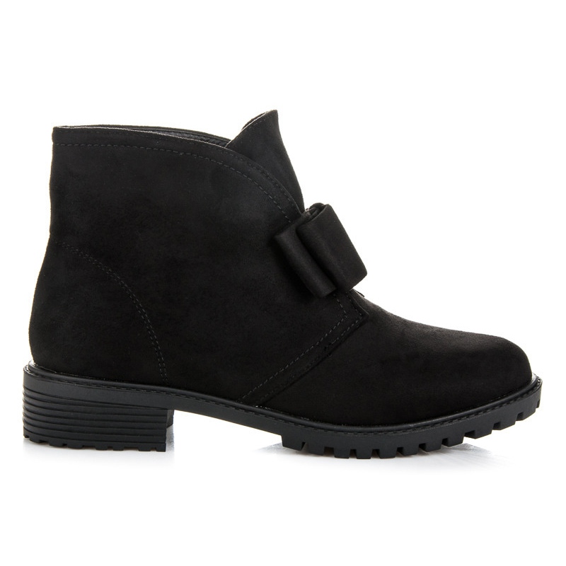 Datorită culorii negre clasice și a unui accent elegant cu fundă, aceste botine sunt un must-have în garderoba oricărei femei. Perfecte pentru utilizarea de zi cu zi, pentru serviciu sau pentru intalniri cu prietenii, aceste botine vor deveni cu siguranta un plus preferat in garderoba ta.