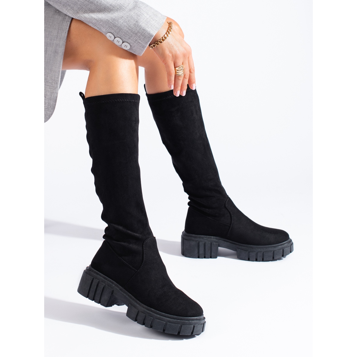 Cizmele slip-on din piele intoarsa neagra Shelovet sunt o alegere ideala pentru femeile care cauta pantofi pentru fiecare ocazie. Iti permit sa creezi tinute sofisticate, de la un look casual, de zi cu zi la seturi mai sofisticate, clasice, fara a sacrifica confortul sau functionalitatea.