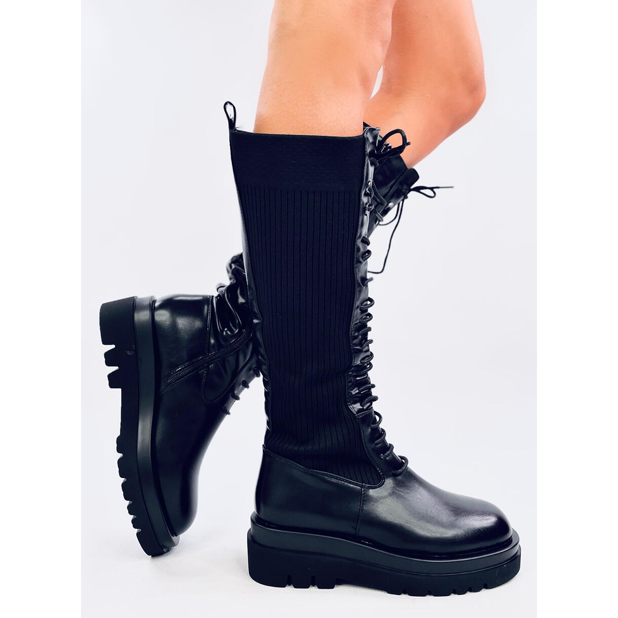 Stebb Black's High -Knee -High Officer este caracterizat printr -un element de fixare cu fermoar confortabil și o dantelă suplimentară, ceea ce vă permite să potriviți perfect piciorul. Interiorul pantofului este izolat, ceea ce le face o alegere ideală pentru zile mai răcoroase. Un avantaj suplimentar este blana care le oferă caracter și stil.