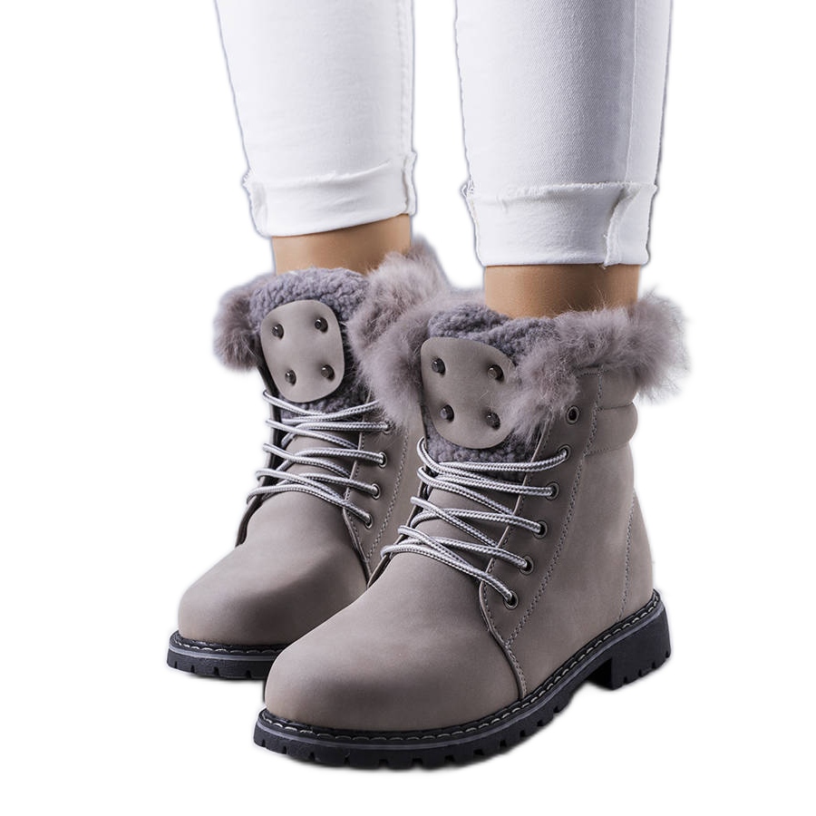 Detalii: PA1 Cizme termoizolatoare gri cu blana de la Rosmina