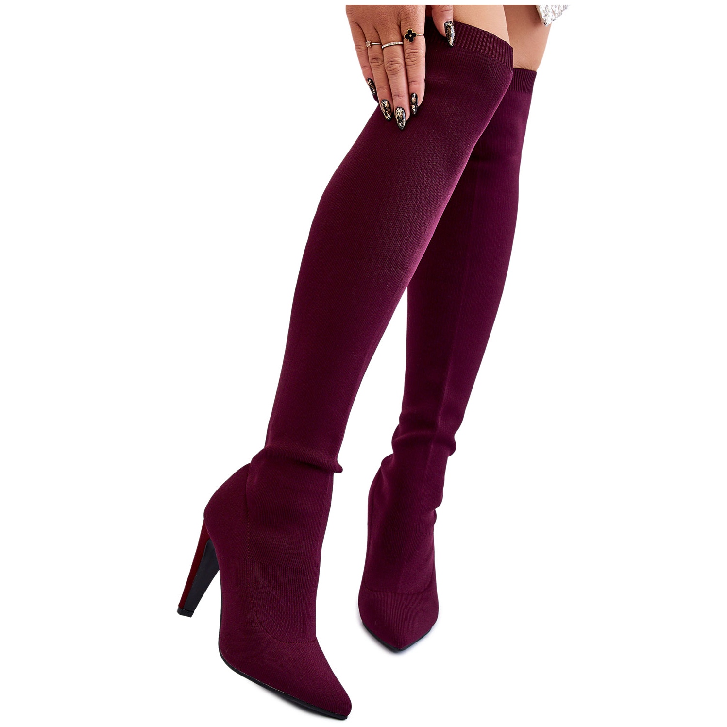 Detalii: BM Cizme Toc Înalt Cu Șosetă Bordeaux Renoli roșu multicolor