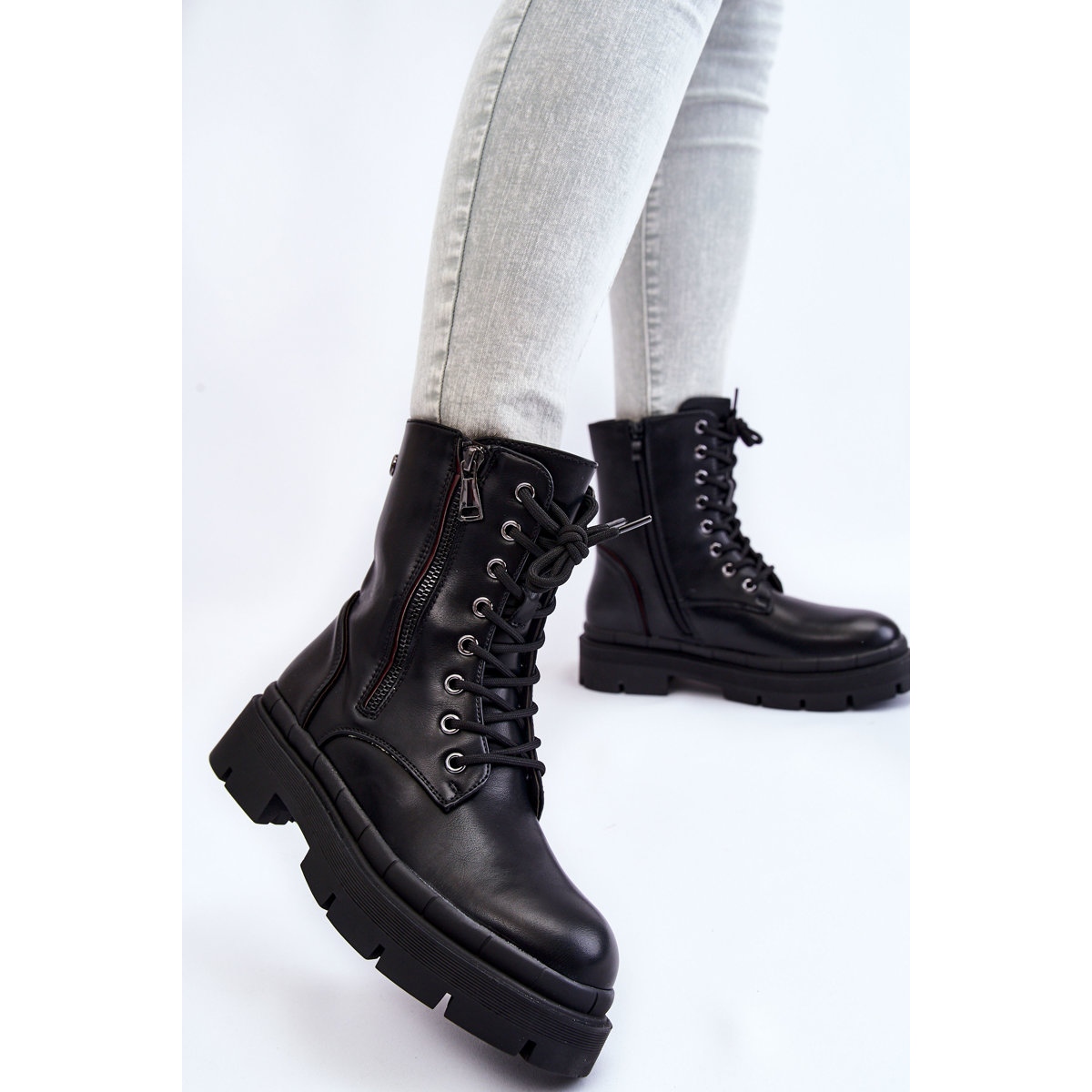 PG1 PG1 Cizme Trapper de damă din piele cu șireturi, negru Shanna