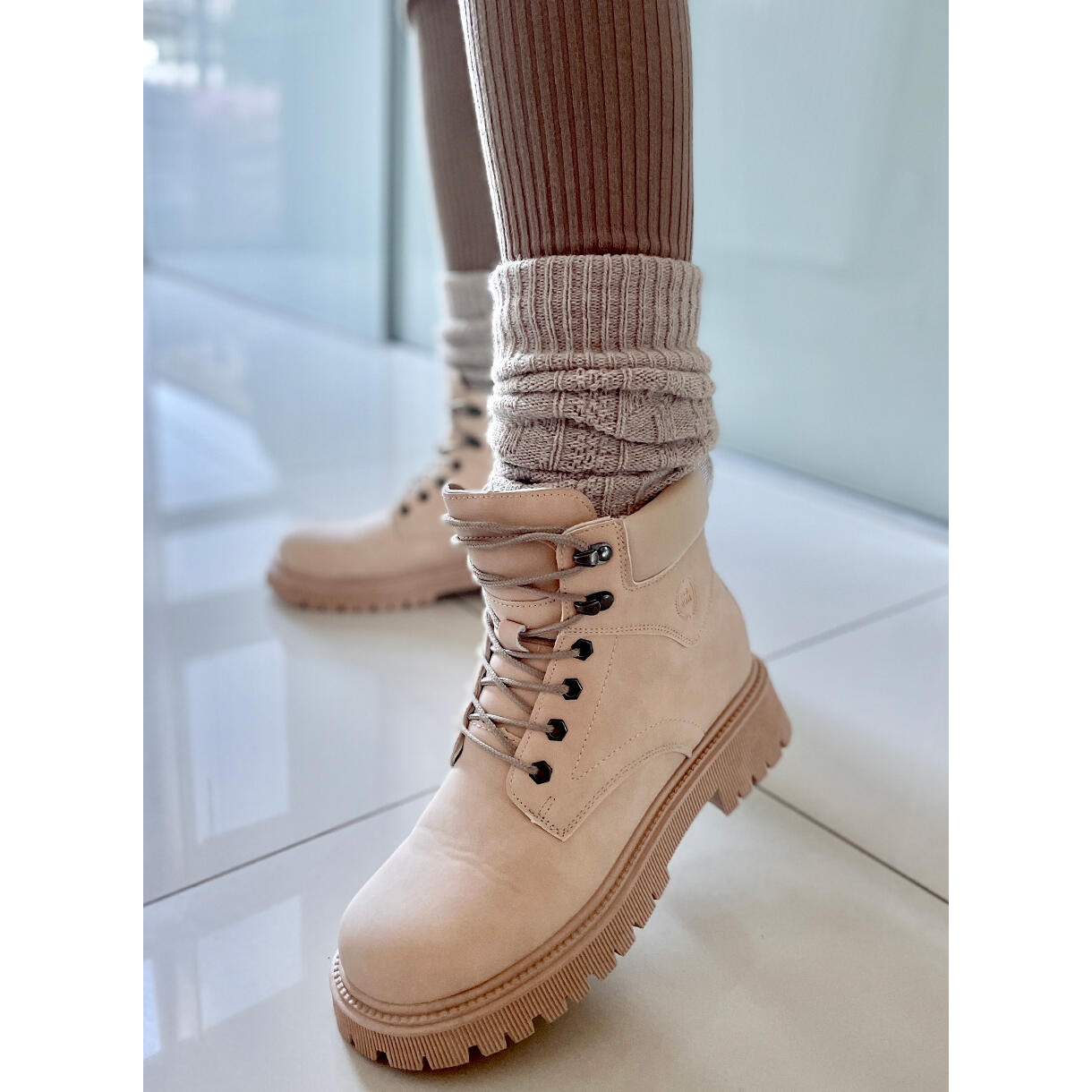 Va prezentam cizmele trapper Basco in bej - alegerea perfecta pentru femeile care apreciaza stilul, confortul si functionalitatea. Aceste cizme plate cu șireturi sunt un plus perfect pentru multe stiluri de zi cu zi. Designul lor atemporal și degetele rotunde le fac nu numai la modă, ci și foarte confortabile.