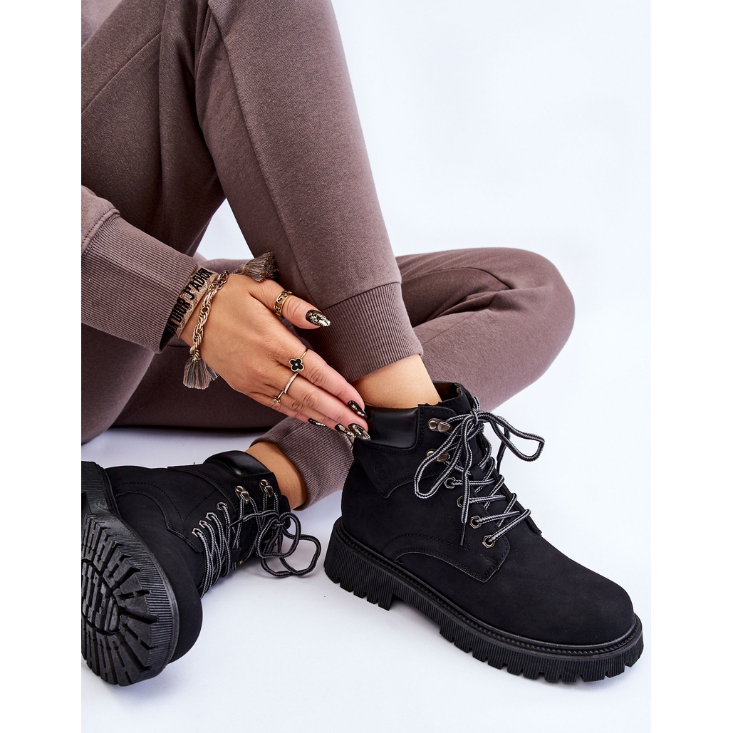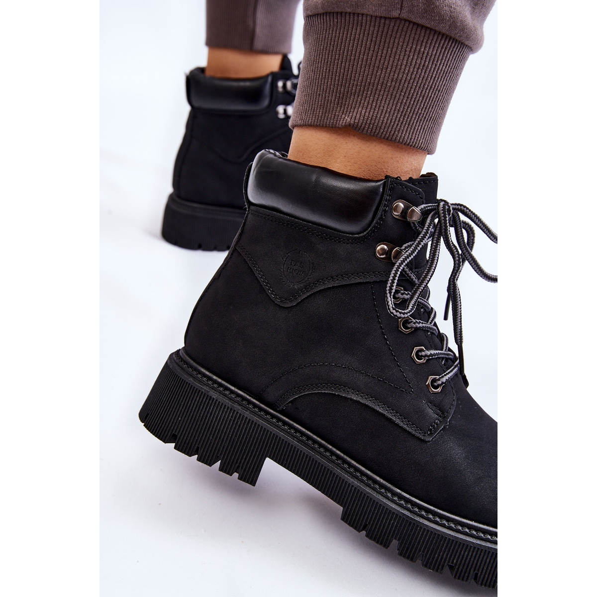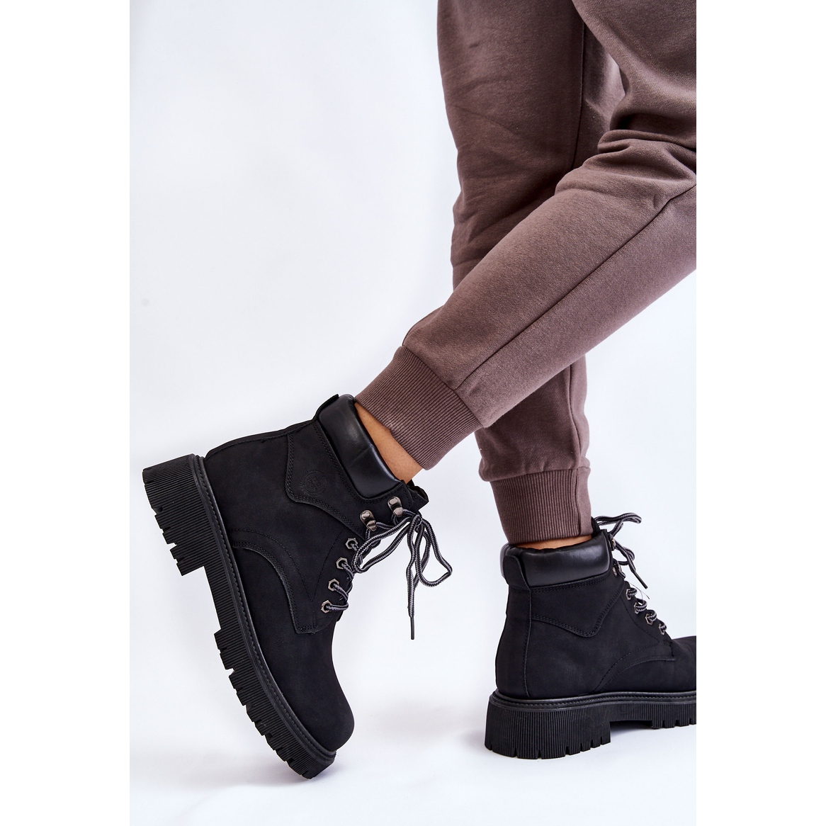 PG1 PG1 Cizme Trapper izolate pentru damă, neagră, la jumătatea drumului negru