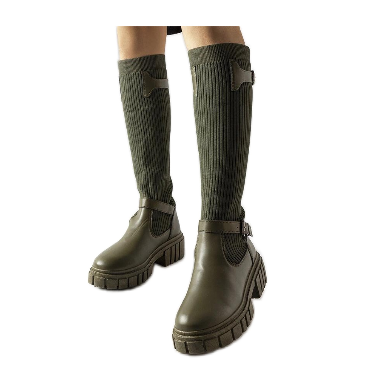 Detalii: Cizme verzi cu partea superioară flexibilă verde