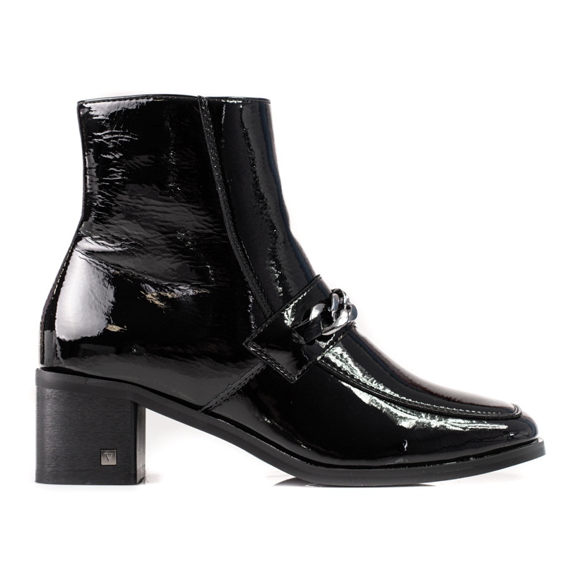 Cizmele de dama elegante cu toc joase de la marca Vinceza sunt alegerea perfecta pentru femeile care apreciaza stilul clasic combinat cu stilul modern. În culoarea neagră, din piele ecologică lacuită, aceste botine se vor potrivi perfect în orice garderobă, adăugând șic și eleganță atât stilurilor de zi cu zi, cât și ocaziilor speciale.