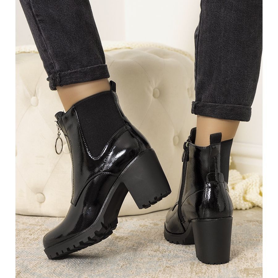 Descoperiți eleganța și confortul cu botinele lacuite izolate negre de la Ward. Acest model fenomenal, confectionat din piele ecologica lacuita de inalta calitate, imbina perfect stilul cu confortul, potrivindu-se perfect cu ultimele tendinte ale modei. Stâlpul de 7 cm înălțime nu numai că subliniază silueta, dar asigură și stabilitate atunci când este purtat.