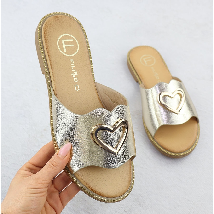 Descoperiți stilul și confortul unic datorită clapelor femeilor cu o inimă decorativă de la brandul Filippo. Modelul DK6909 în culori de aur este o propunere ideală pentru zilele de vară, care va oferi nu numai un aspect la modă, ci și comoditatea purtării.