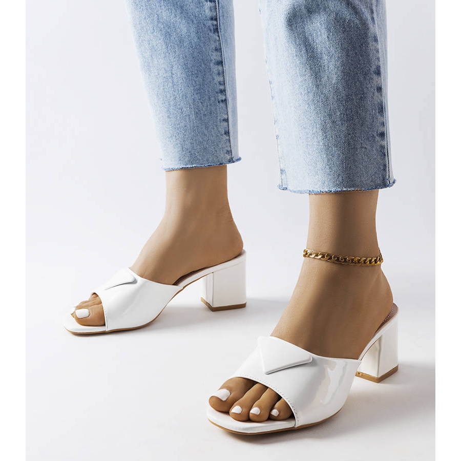 Faceți cunoștință cu mulașii cu toc înalt Branch brevetat alb - un must-have pentru fiecare femeie la modă care caută eleganță și confort pentru zilele de vară. Aceste șlapi eleganti sunt o combinație de design modern și funcționalitate. Confectionate din piele ecologica, acoperite cu lac care atrage ochiul, atrag atentia si adauga prospetime oricarui styling.