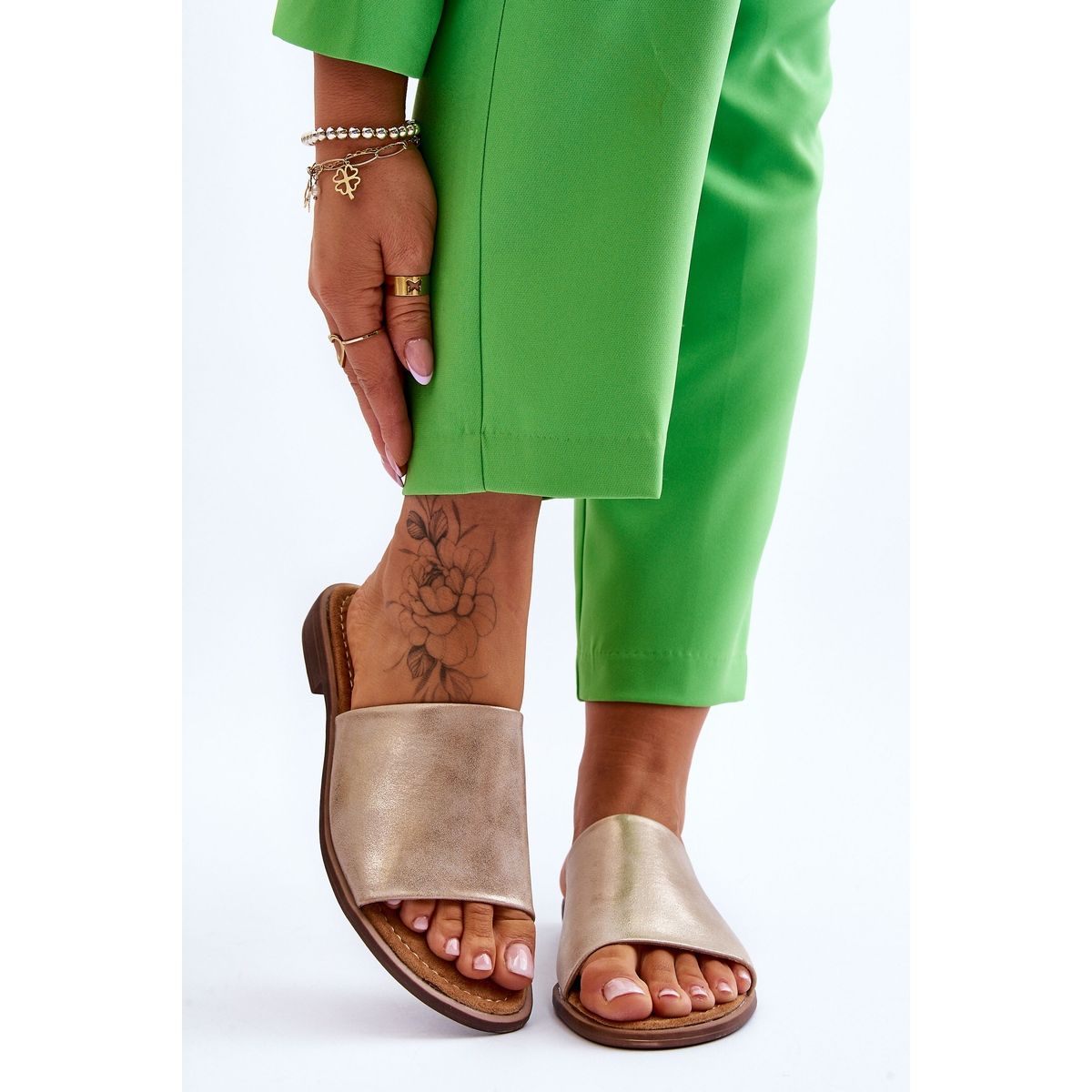 Culoarea aurie a șlapilor se potrivește perfect cu stilurile de vară, adăugându-le un pic de strălucire și eleganță. Talpa bej completează armonios întregul, dând pantofilor un aspect modern. Fără model, cu un finisaj subtil, șlapii Cerise vor fi o completare excelentă atât pentru ținutele casual, cât și pentru cele mai elegante.