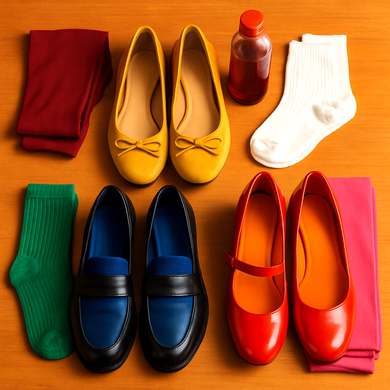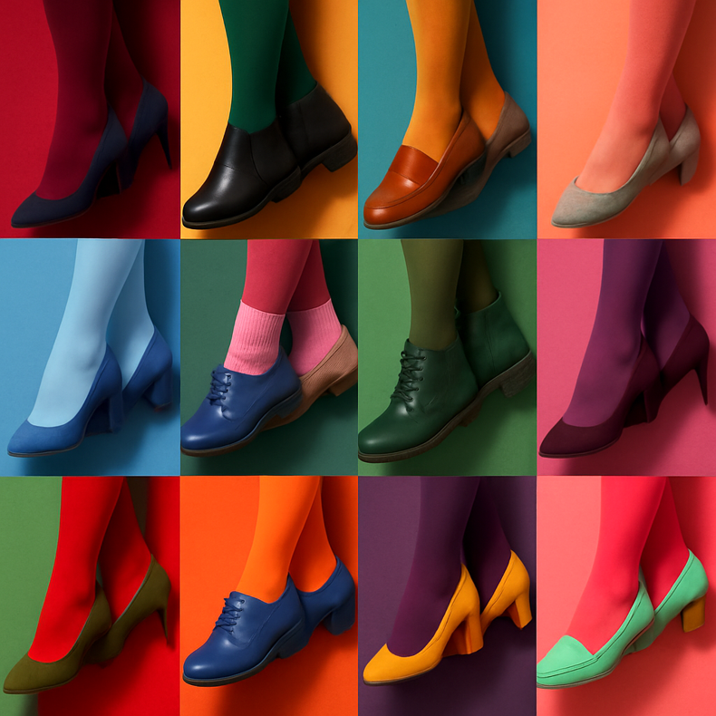 Descoperiți arta combinării colanților colorați și a șosetelor pentru încălțăminte! Descoperiți teoria culorilor, combinații dovedite, reguli reglabile la ocazie și învățați experimente curajoase cu texturi și modele.