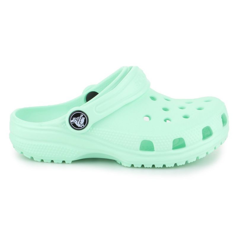 Șlapii Crocs Classic Clog K Jr 204536-3TI în verde sunt o alegere perfectă pentru copiii care doresc să îmbine stilul și confortul. Fabricate din materialul inovator Croslite™, aceste șlapi nu sunt doar ușoare, ci și extrem de confortabile de purtat, făcându-le încălțăminte perfectă pentru piscină sau plajă.