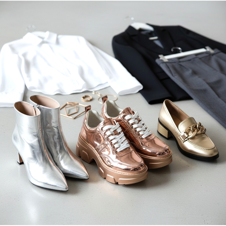 Dacă ești curajos, maro metalic, argintiu sau auriu sunt culorile care vor fi un hit în primăvara anului 2026. Sunt populare mai ales în colecțiile premium și în locurile de muncă mai creative. Poarta pantofi metalici cu tinute neutre - negru, alb, gri - pentru a nu fi prea mult flash deodata. Seara, adidașii sau cizmele metalice pot deveni o completare excelentă a unui stil elegant. În timpul zilei, pantofii sau adidașii metalici cu platformă vor arăta modern și la modă, mai ales dacă îi combini cu îmbrăcăminte minimalistă.