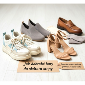 Pantofii din piele naturala sunt aici un mare avantaj – materialul modeleaza si se adapteaza la forma piciorului dupa cateva utilizari. De asemenea, merită să luați în considerare o inserție suplimentară sau o inserție pentru călcâi care va bloca călcâiul și va împiedica alunecarea acestuia. De asemenea, sandalele cu o curea la gleznă stabilizează perfect picioarele înguste.